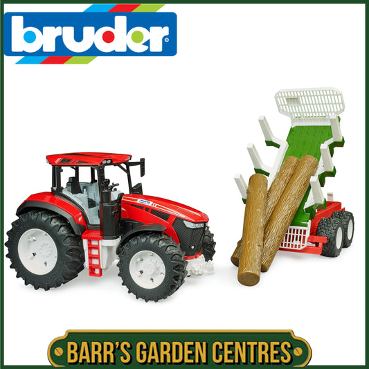 BRUDER ROADMAX Tractor with Forwarding Trailer and 3 Tree Trunks