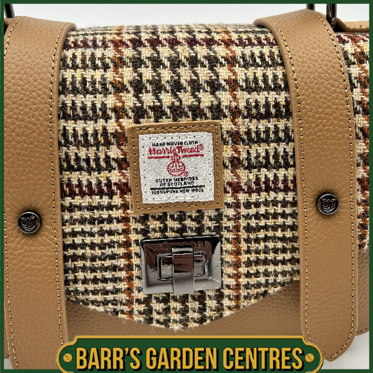 Islander Medium Satchel Bag with Harris Tweed Brown, Beige & Green Chestnut Tartan