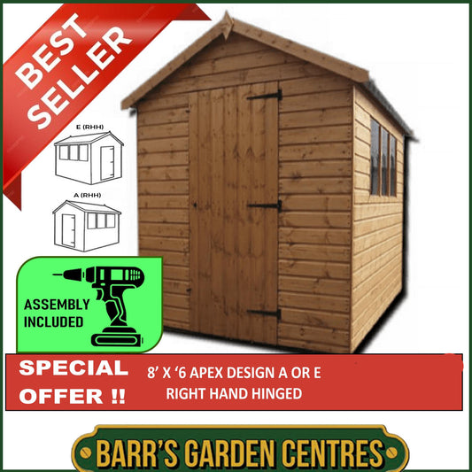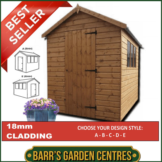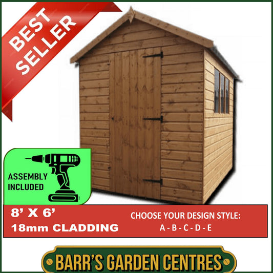 Standard Apex Shed Upgraded to 18mm Cladding - Delivered & Professionally Assembled (Includes Bearers)