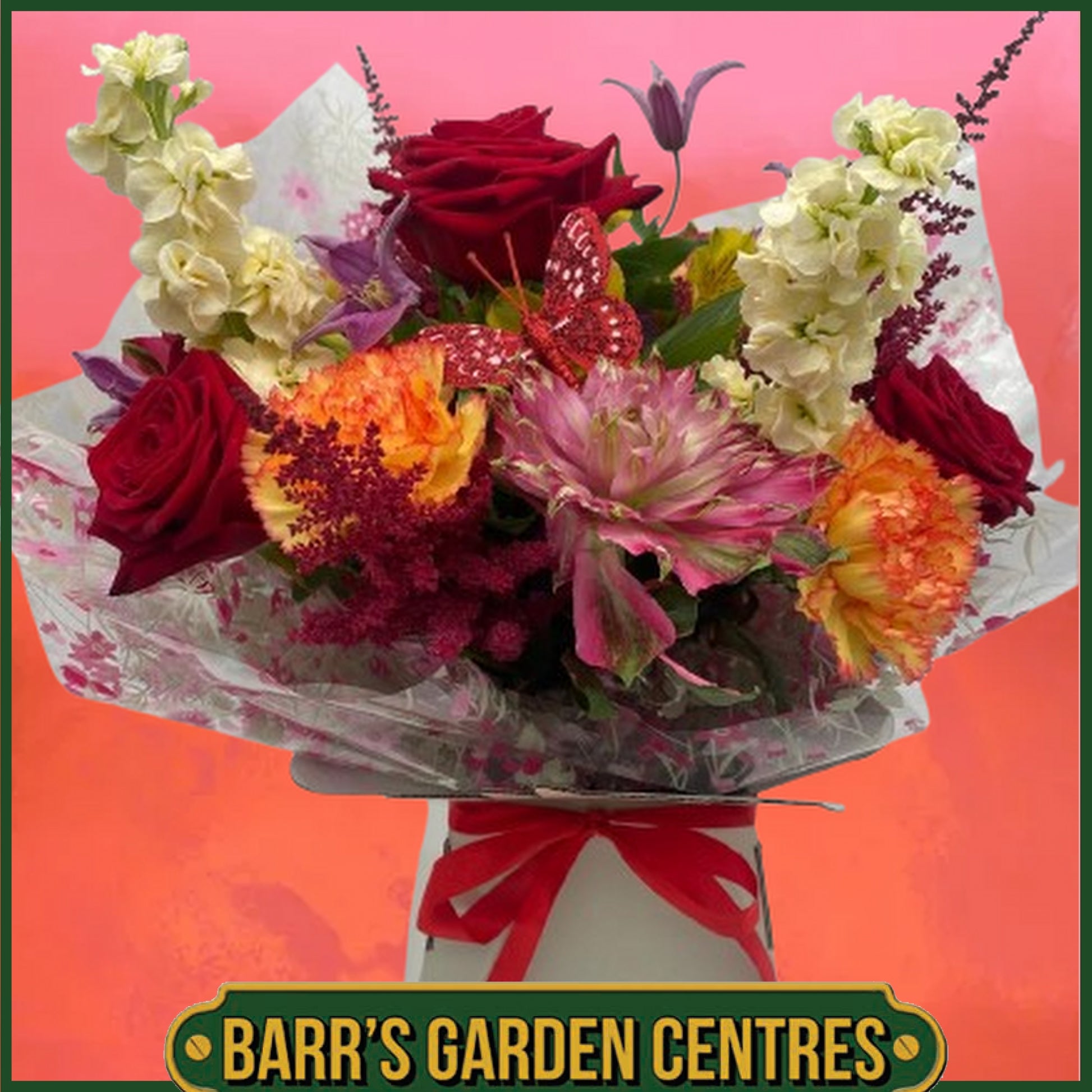 Our floristry team create beautiful bouquets in water using the best quality fresh flowers in a selection of Red colours.
