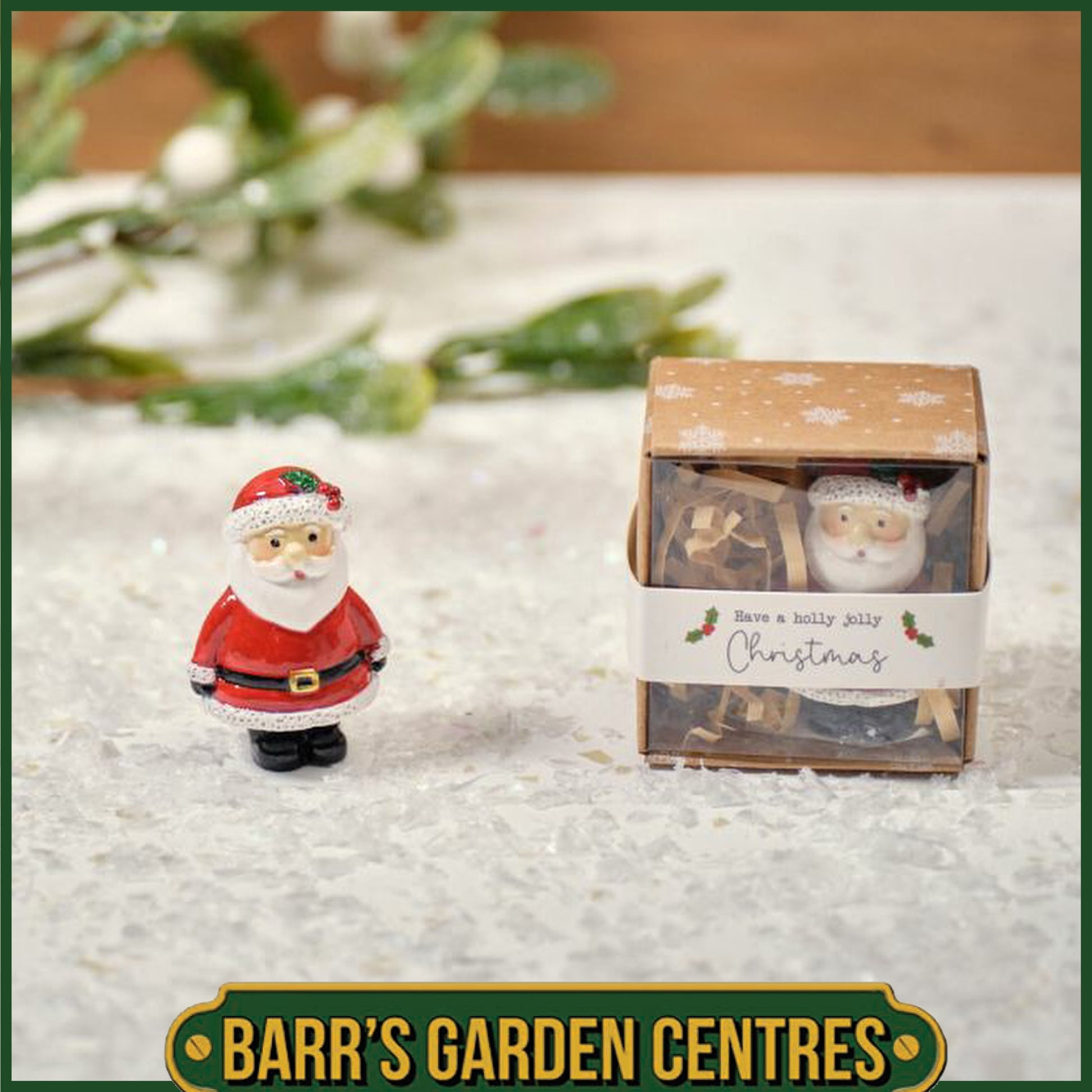 Christmas Tiny World Resin Father Christmas Keepsake Ornament with Gift Box