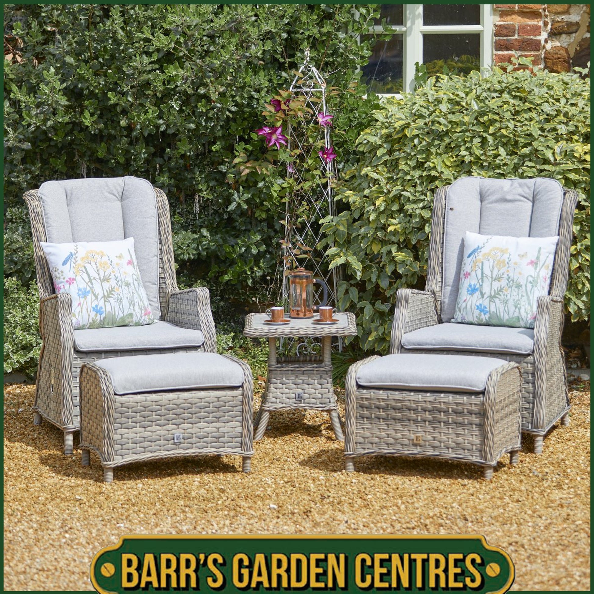 The Florence 5 Piece Reclining Duo Set is crafted with meticulous attention to detail. Featuring: Stain Resistant Fabric, Season-proof cushions, Environmentally Friendly EcoCore, 3 year Warranty, Handwoven Multi-toned Hook Poly-Rattan with authentic wicker effect, Twisted Rod Weave Trim, UV resistance, Powder Coated Lightweight Frame, Strengthened Ceramic Coated Safety Glass. This product is made from high-quality materials such as Poly-Rattan, Aluminium, EcoCore Poly Fibre, Spun Polyester Fabric, Glass. Experience the perfect blend of functionality, style with the Florence 5 Piece Reclining Duo Set.