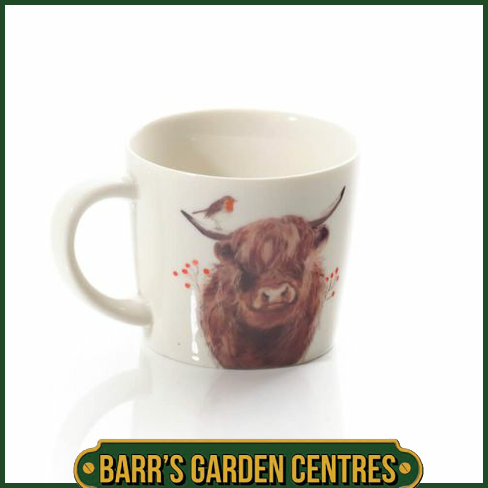 Enjoy your favourite festive drinks with the Frosted Highland Cow with Robin Stoneware Mug. Designed with a white base, this charming mug features an illustration of a Highland cow with a robin perched on its horn, accented with red berry details. Durable and full of rustic seasonal charm, it’s perfect for adding a countryside touch to your Christmas kitchenware collection.