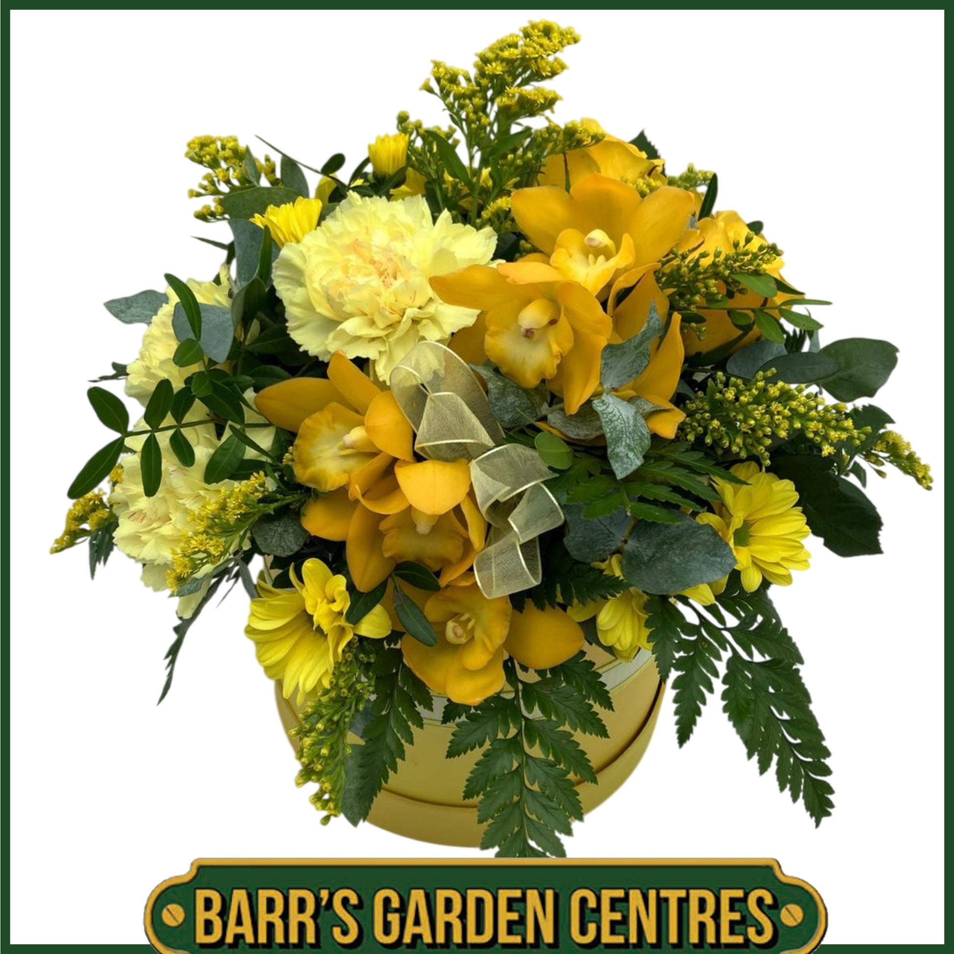 Hat Boxes are a modern arrangement of fresh flowers lovingly created by our florists.