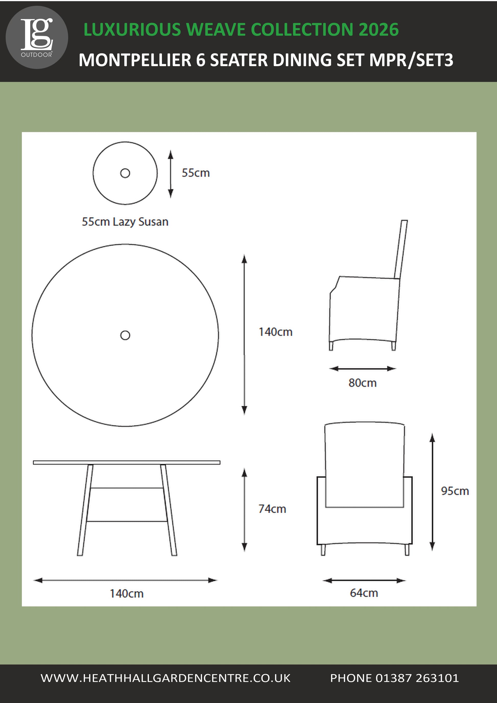 Montpellier 6 Seater Dining Set with 3m Parsol & Lazy Susan