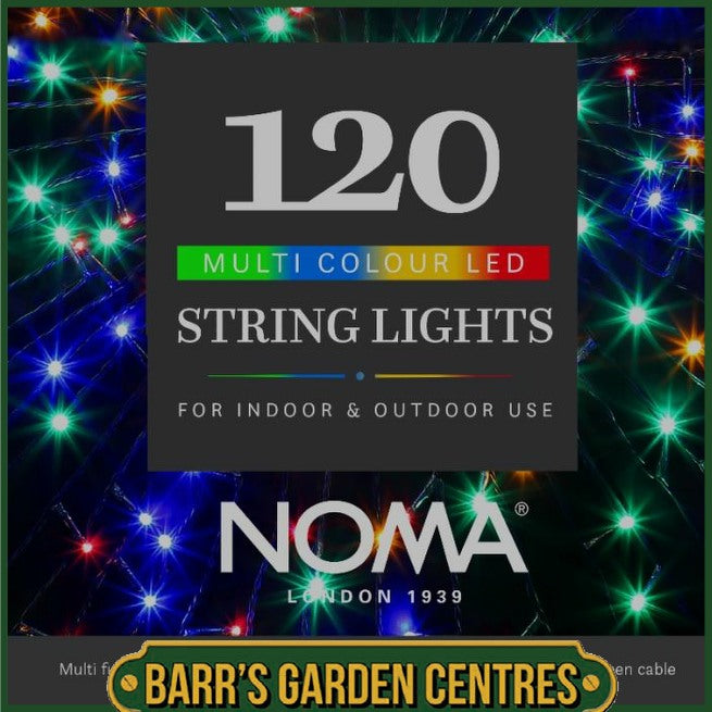 Ensure your lighting décor has that extra special homely feel with the inviting Multi-Function LED String Lights from NOMA, in a stunning MultiColour colour. Simply position as you prefer, plug in and let the mains-powered lights glow or flash through 8 unique functions, with an impressive lifetime of up to 20,000 hours. This set of 120 LEDs offers 8.9m lit length making these NOMA string lights popular for adorning 4 or 5ft Christmas trees with or wrapping around bannisters. 5m out of the overall length is made up of the cable lead, which gives you the freedom you need to plug into your nearest mains socket, without straining or having hazardous taut wires. Finished in a dark green colour, the cable blends in beautifully with Christmas trees and other rustic foliage arrangements for a splash of colour and Christmas cheer!
