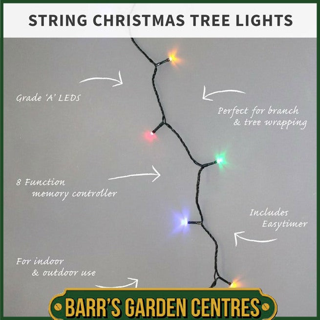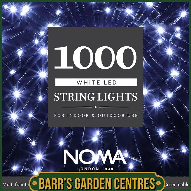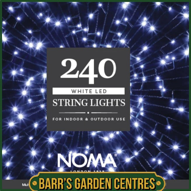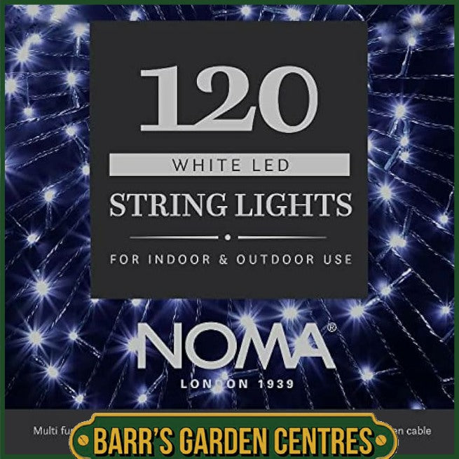 Ensure your lighting décor has that extra special homely feel with the inviting Multi-Function LED String Lights from NOMA, in a stunning white colour. Simply position as you prefer, plug in and let the mains-powered lights glow or flash through 8 unique functions, with an impressive lifetime of up to 20,000 hours. This set of 120 LEDs offers 8.9m lit length making these NOMA string lights popular for adorning 4 or 5ft Christmas trees with or wrapping around bannisters. 5m out of the overall length is made up of the cable lead, which gives you the freedom you need to plug into your nearest mains socket, without straining or having hazardous taut wires. Finished in a dark green colour, the cable blends in beautifully with Christmas trees and other rustic foliage arrangements for a splash of colour and Christmas cheer!