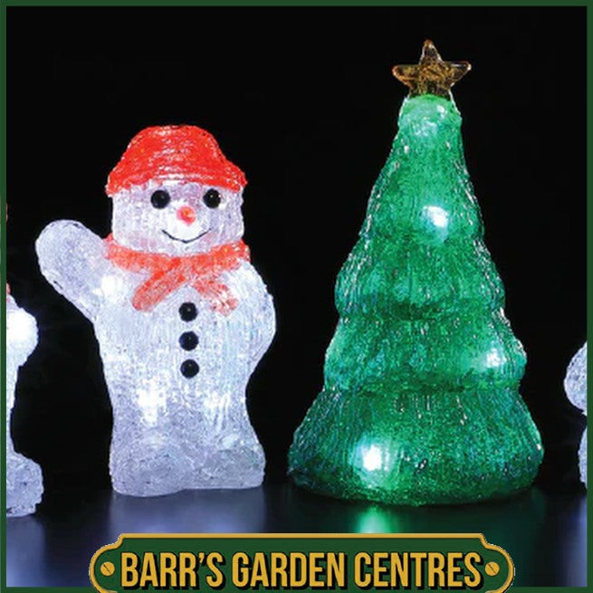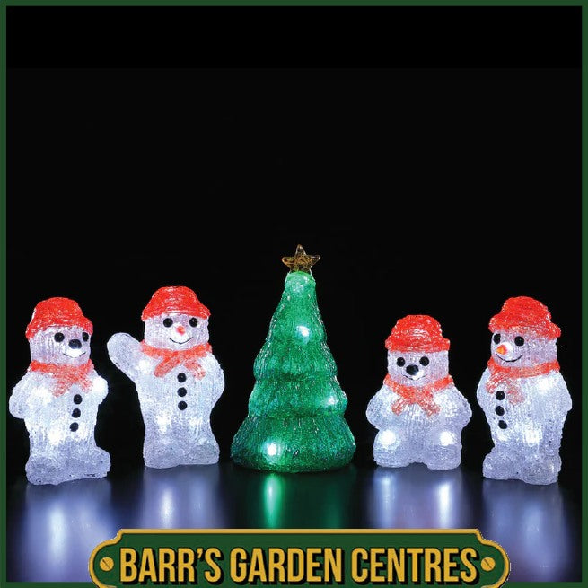 Brighten your holiday décor with the 4 Acrylic Snowmen & Tree String Lights. This charming set features four snowmen and one colourful Christmas tree, each illuminated with 8 white LEDs to create a festive and cheerful display. With a height of 17cm and 30cm cable spacing between each figure, these lights provide a delightful arrangement. The 10m lead cable offers flexibility in placement, while the EasyTimer technology ensures convenient operation. Ideal for both indoor and outdoor use, these low voltage lights add a magical touch to your Christmas celebrations.