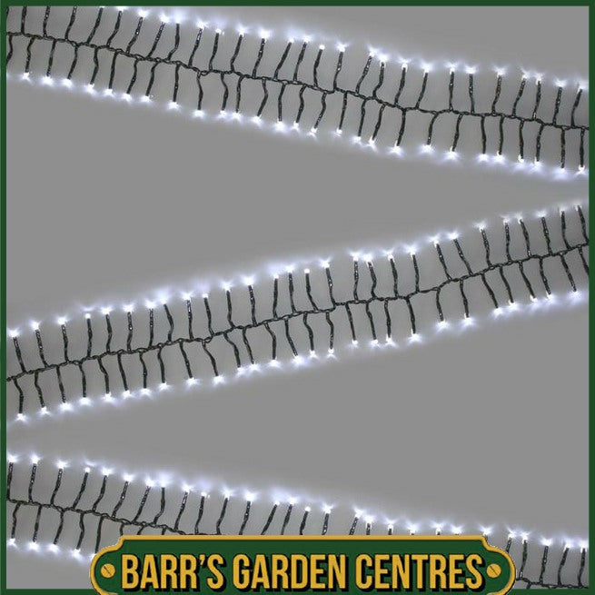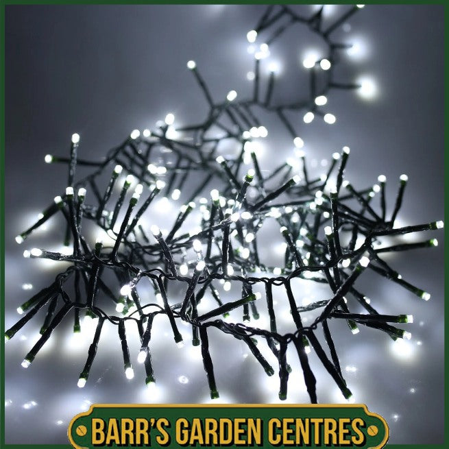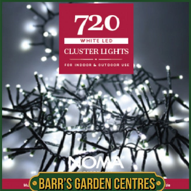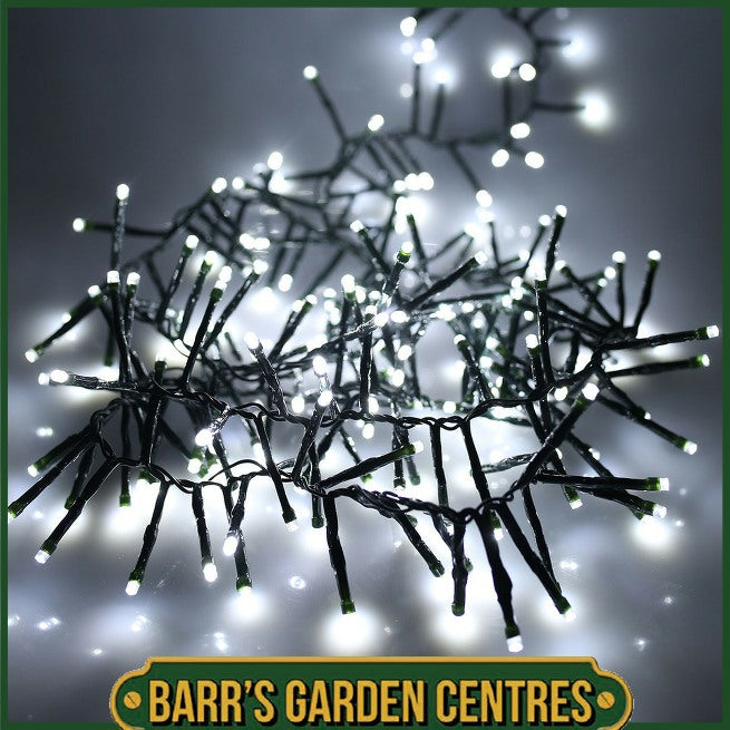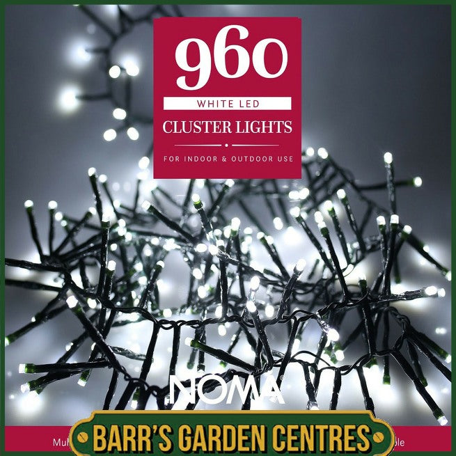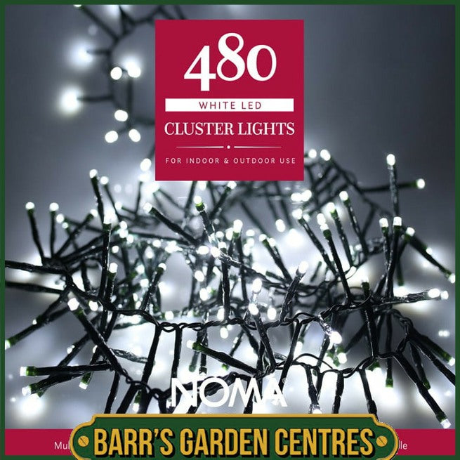 Stand out from the crowd and ensure your lighting décor is both eye-catching and elegant with the vibrant Multi-Function Cluster LED Lights from NOMA, showcasing a stunning blend of traditional white tones! Simply position as you prefer, plug in and let the mains-powered lights glow or flash through 8 unique functions with an impressive lifetime of up to 20,000 hours. Boasting four times as many lights per metre as traditional string lights, the set of 480 LEDs offers a 6.95m lit length that makes these NOMA string lights popular for adorning trees, banisters, gutters, mantelpieces and windowsills. 5m out of the overall length is made up of the cable lead, which gives you the freedom you need to plug into your nearest mains socket, without straining or having hazardous taut wires. Finished in a dark green colour, the cable blends in beautifully with Christmas trees and other foliage arrangements for a charming display of Christmas cheer!