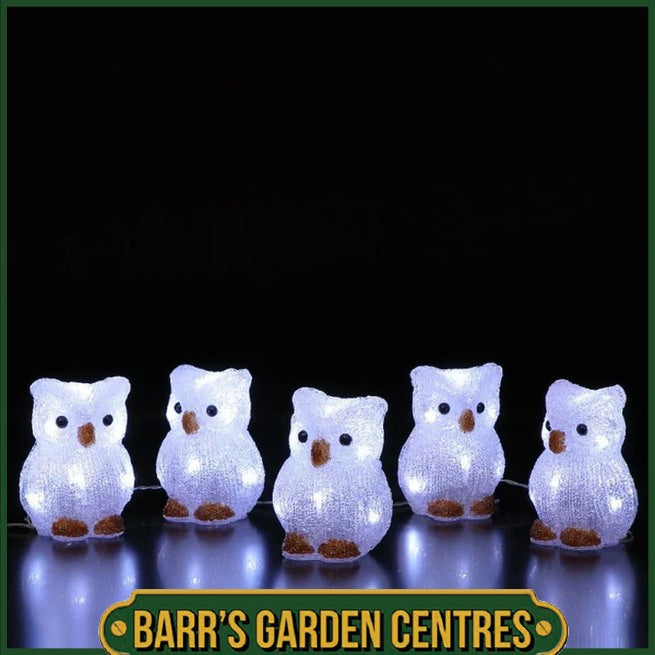 Experience the enchantment of winter with Noma's Set of 5 Acrylic Owls Light Chain! These lovely owls are lit with 8 energy-efficient white LEDs each, creating a magical glow. With EasyTimer technology, they can be set to automatically turn on and off, adding convenience to their charm.