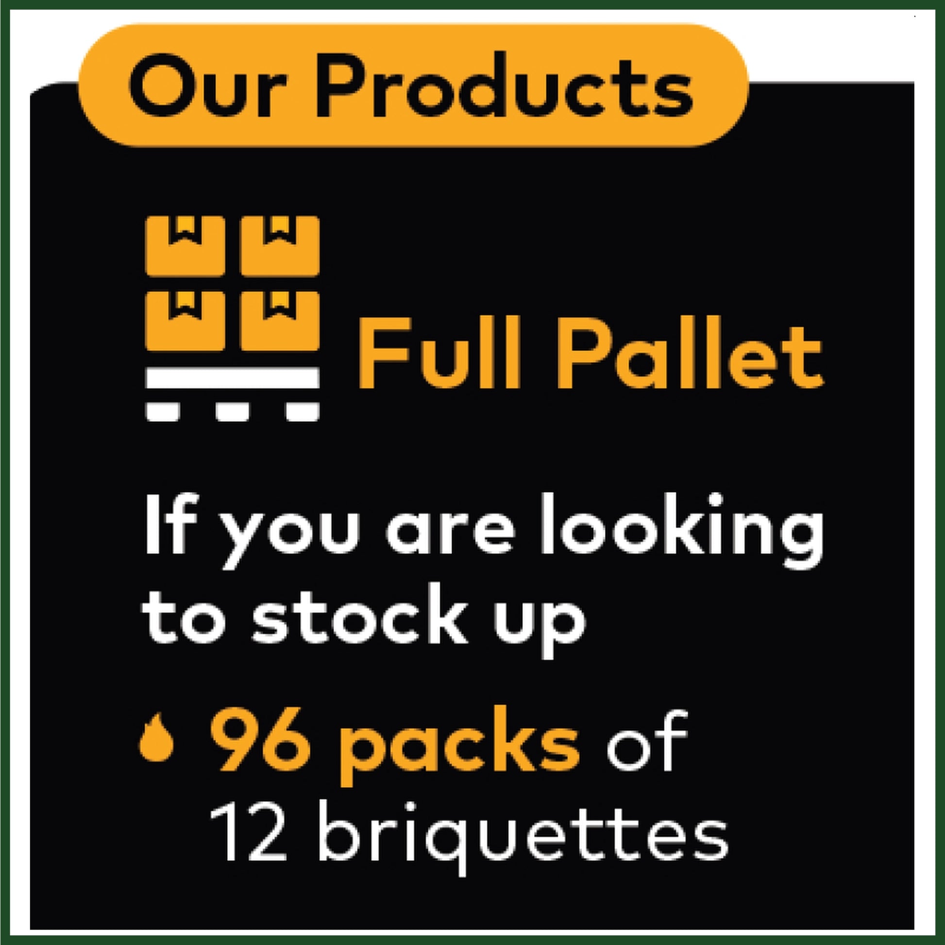 Briquettes are produced using wood chips from a sawmill. By using local resources, you help to minimise the need for imported fossil fuels or firewood. All timber used in the production process is FSC Certified, which means it is sustainably sourced and replanted, ensuring a continuous and renewable supply. Briquettes are 100% carbon-neutral. During the burning process, they only release as much carbon dioxide at the wood absorbed during its growth! Easy to Store Briquettes are compact and easy to stack, allowing for efficient storage in small spaces. Versatile Briquettes can be used in various heating applications, from wood burning stoves and fireplaces to pizza ovens, fire pits and wood-fired hot tubs. Sustainable & Eco Friendly