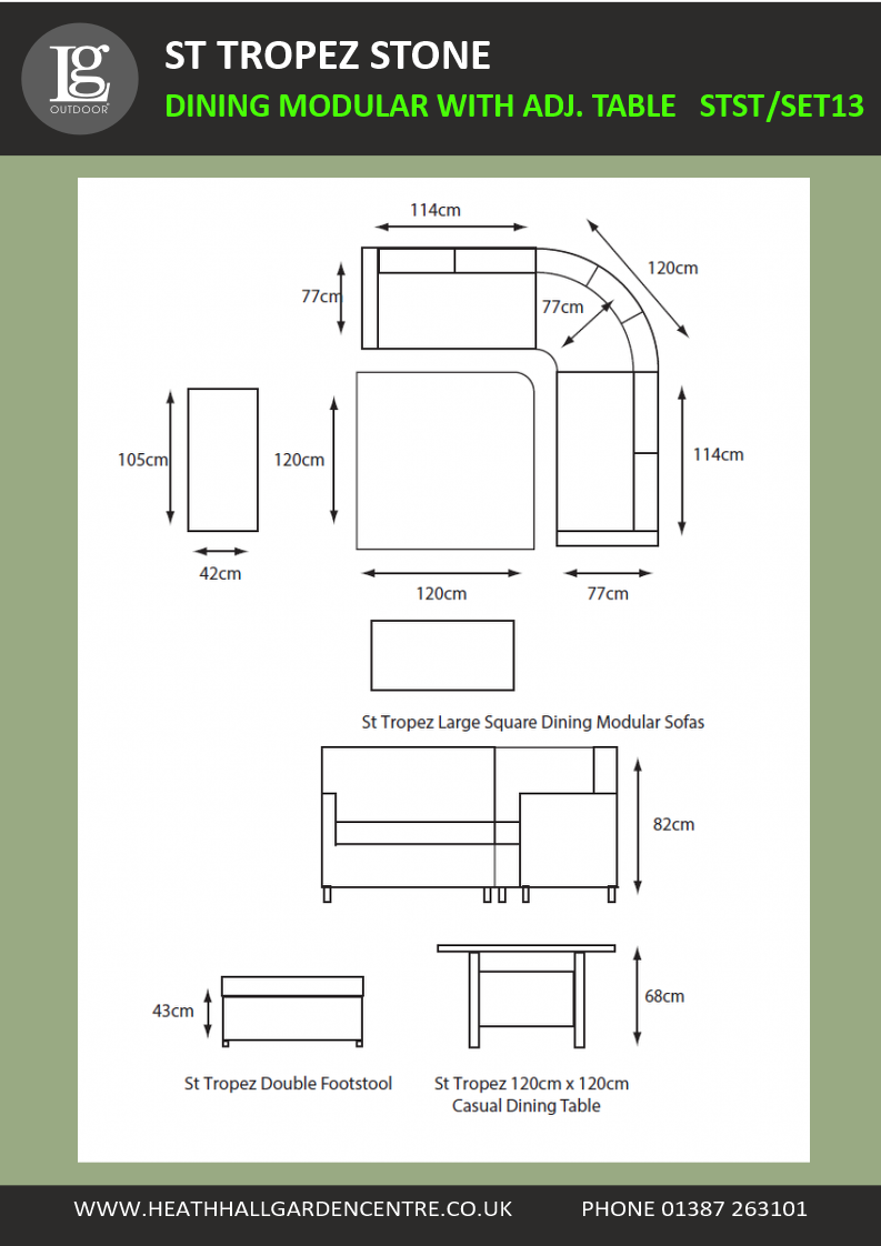 St Tropez Stone Modular Dining Set With Adjustable Table Set13