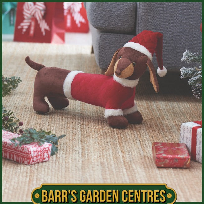 Bring wagging tails and holiday cheer to your home with Donovan, the adorable plush festive dachshund. Dressed in a classic red Santa outfit and matching hat, Donovan is the perfect seasonal companion for any dog lover.