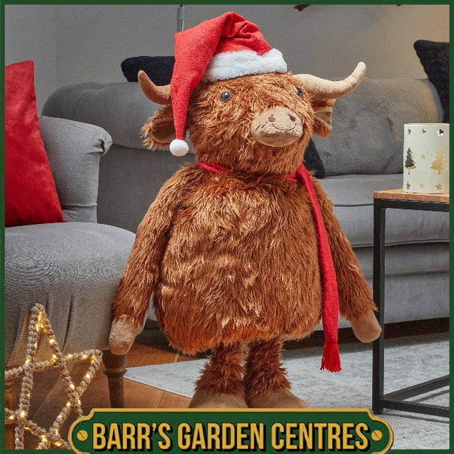 Bring a touch of Scottish charm to your festive season with Hairy Hattie, the extra-large plush Christmas Highland Cow! Featuring a soft, fluffy coat and a lovable, cuddly design, this charming cow is sure to steal hearts and add cosy cheer to your holiday décor.