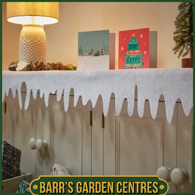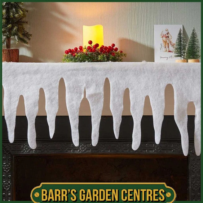 Add a touch of winter magic to your décor with this white icicle fringe. Ideal for creating a snowy edge on tables, mantels, or shelves, it brings a festive and elegant finish to your seasonal displays.