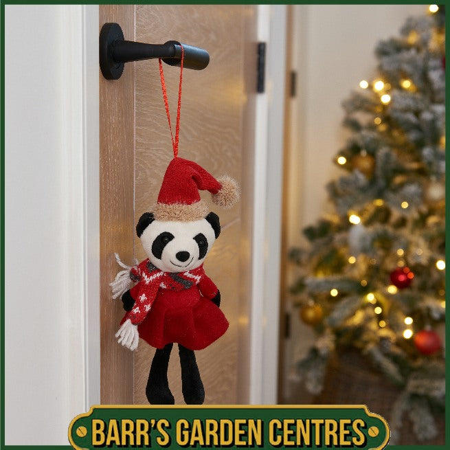Meet Pandora, the festive panda who’s ready to spread Christmas cheer! Dressed in a cozy red dress, matching knit scarf, and a fluffy Santa hat, Pandora is perfect for hanging on anywhere that needs a touch of adorable holiday spirit. Her soft plush design makes her a charming addition to your Christmas décor and a delightful companion for the season. Ideal for indoor use and sure to bring smiles to both kids and grown-ups alike.