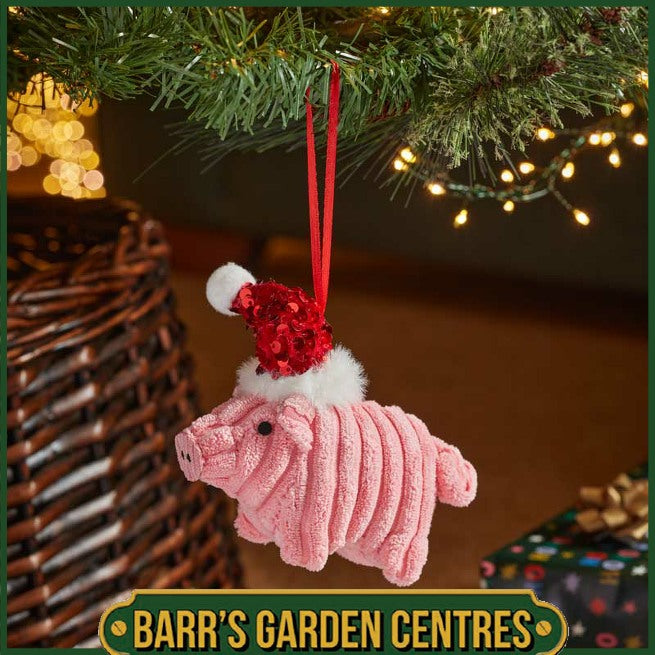 Bring a sprinkle of playful charm to real or artificial Christmas tree with the delightful Three Kings Polly Pig Pendant. Standing at a perfectly petite 14cm tall, this endearing little pig is crafted from wonderfully soft pink plush, offering a comforting texture that makes her utterly irresistible. Polly Pig is ready to spread festive cheer with her delightful design. Her most striking feature is the vibrant red sequined Santa hat perched on her head, gleaming brilliantly as it catches the light and adding a playful sparkle to her already adorable appearance. Designed for effortless display, she comes complete with a coordinating red hanger, allowing for easy positioning and placement anywhere you wish to add a touch of whimsical joy.