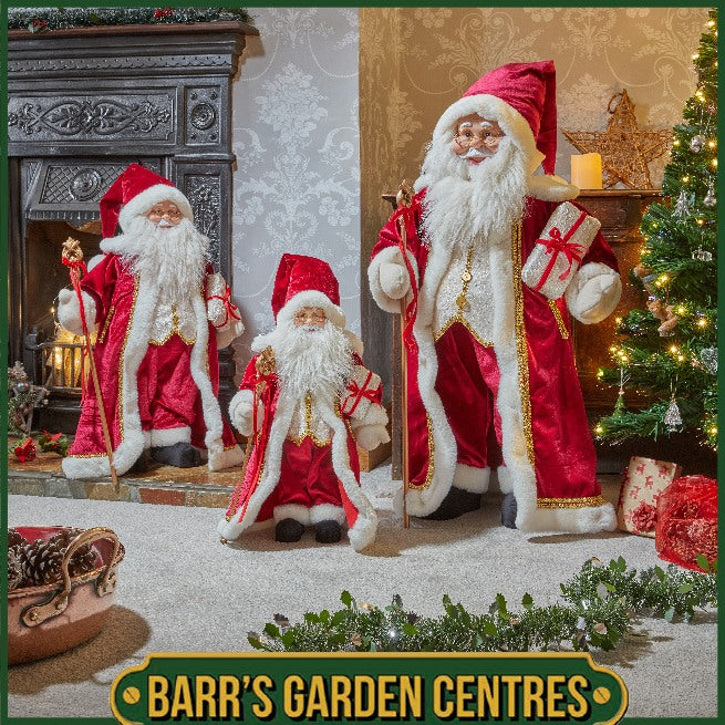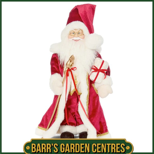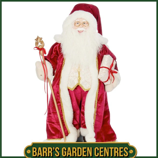 Fall in love with this classic Santa! Crafted from quilted, plush velvet material with a luxurious faux fur trim, he’s the perfect addition to any Christmas display. Add a touch of traditional charm and festive spirit to your holiday décor with this jolly Santa!