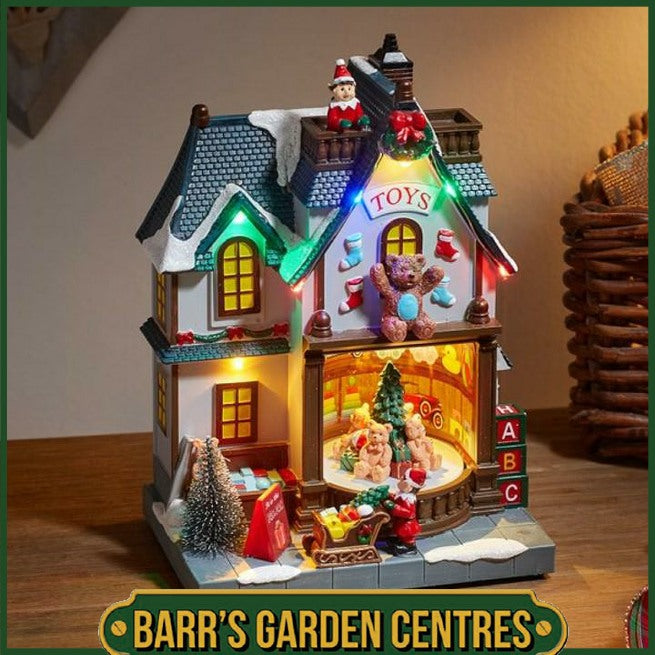 🎁✨ Bring the magic of Christmas to life with this delightful Light-Up Toy Shop SnowScene! Featuring a charming hand-painted building adorned with colourful LEDs and festive details, it captures the warmth and joy of the holiday season.
