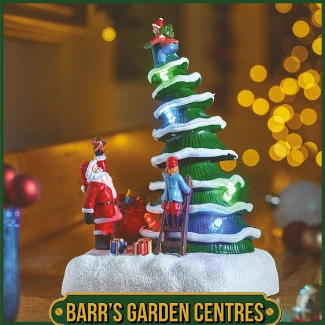 🎄 Light up your holiday spirit with this jolly SnowScene! Watch Santa and his little helpers deck the tree with colourful twinkles that sparkle and shine. Perfect for adding some festive magic and cheer to any room! ✨🎅🎁