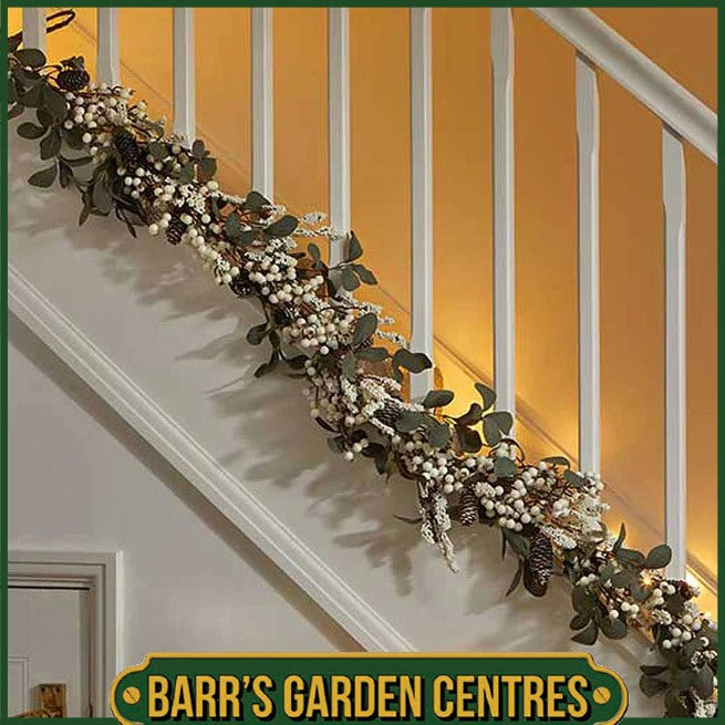 Add a touch of understated winter charm with this delicate garland featuring: