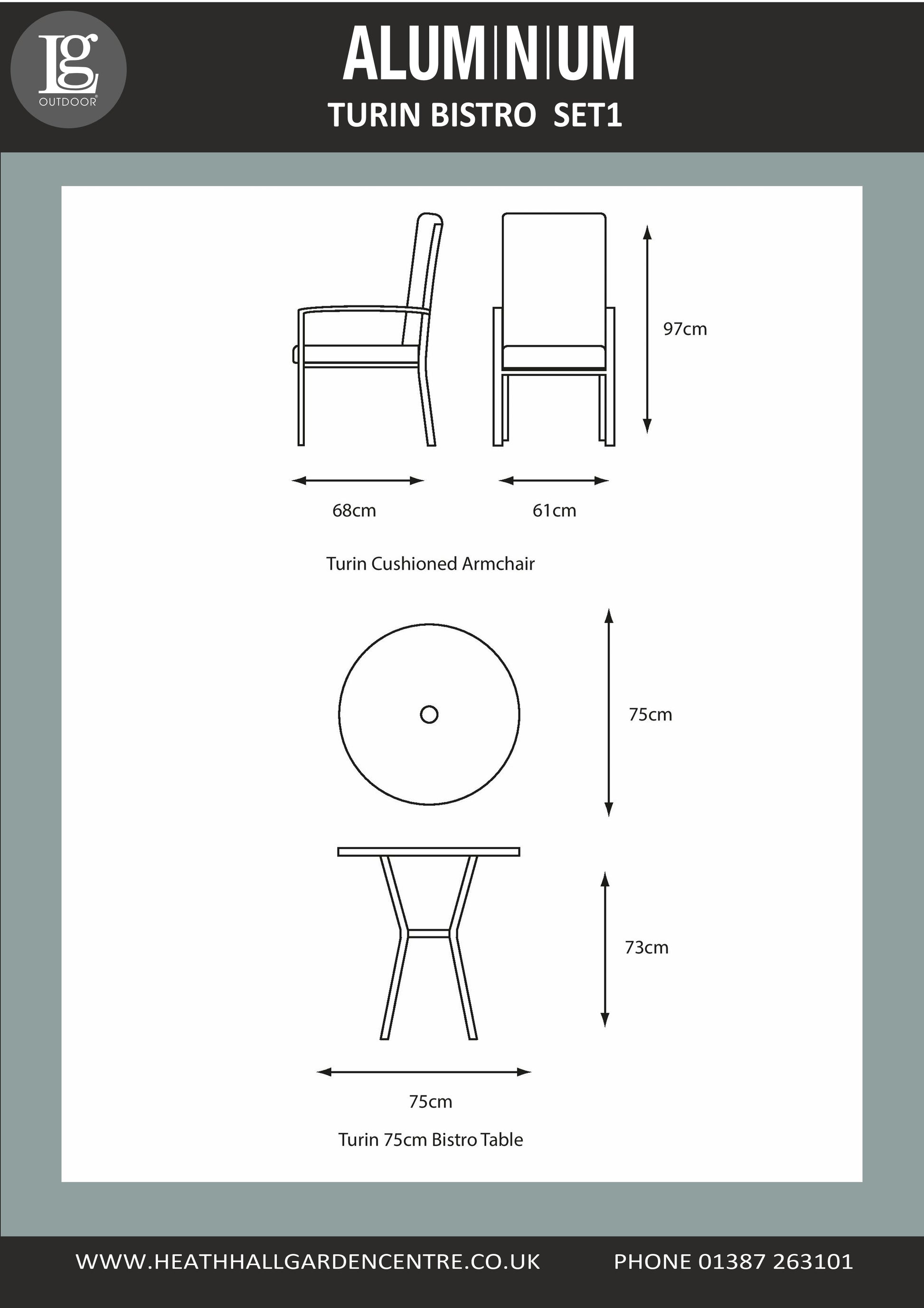 The LG Turin Bistro Set is an attractive, contemporary aluminium 2 seater set that would be perfect for small spaces.